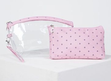 Набор косметичек 2 в 1 Корона, отдел на молнии с ручкой, розовый