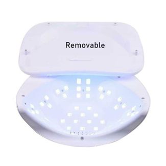 Универсальная LED/UV лампа SunX Plus 72 Вт - обладает технологией двойного источника света, охватывает более широкий спектр ультрафиолетового диапазона, по этому подходит для сушки гель-лаков и большинства гелей, оснащена 36 светодиодными лампочками. Съемное дно в лампе предусмотрено, что обеспечивает вполне комфортное выполнения педикюра. Дно крепится с корпусу с помощью магнита. Имеет пластиковый корпус, на верхней части которого расположены кнопки управления режимами таймера, а также цифровой дисплей. Лампа очень просторная, в нее могут с легкостью поместится обе руки. Имеет 4 режима работы таймера: 10, 30, 60 и 99 секунд (это режим пониженной мощности). Для просушивания гель-лака достаточно 10-30 секунд. Лампа SUN X Plus - особенности: