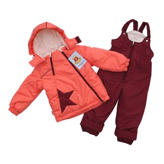 Яркий демисезонный костюм для прогулок в холодное время года. Куртка имеет 2 молнии: короткую - не разъемную и длинную - разъемную. На полочке карман декорирован звездой, рукава на резинке. По низу изделия проложен шнур для утяжки. Капюшон имеет утяжку, на кнопках и при необходимости отстёгивается. Полукомбинезон для размеров 80-98 см имеет дополнительную резинку для обуви, а низ штанины на резинке.Для размера 104-110 см штаны прямые с ветрозащитным манжетом. Утеплитель синтепон-люкс 150гр/м2, ткань верха Deuspo. Подклад: рр80-98см - мягкий флис и хлопок 100%, рр104-110см - мягкий флис и полиэстер 100%. Температурный режим от 0 до +15.Внимание! Фактический цвет изделия может незначительно отличаться от цвета на фотографии в связи с особенностями цветопередачи различных цифровых устройств. None