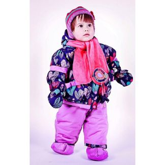 Куртка, полукомбинезон, шапка (флис), шарф (флис), манишка (флис), варежки, пинетки.Костюм с отстегивающимися пинетками. Состав: верх: 100% нейлон, ткань имеет покрытие DuPont Teflon ®; наполнитель: 100% нейлон (Aerofiber); подкладка: 70% полиэстер, 30% рейон. Фурнитура: YKK Group ®. Температурный режим рассчитан до -30C; капюшон пришит к комбинезону; дополнительная «шторка» на резинке внутри капюшона обеспечивает его максимальное прилегание к голове ребенка; капюшон, спинка, полочка комбинезона, варежки и пинетки имеют мягкую флисовую подкладку; варежки и мягкие ботиночки-пинетки прикрепляются к комбинезону тесьмой и пристегиваются на кнопки; на рукавах предусмотрена резинка и дополнительная утяжка-липучка для регулирования по размеру; есть тесемка-утяжка на талии для большего прилегания комбинезона; дополнительная резинка-манжет на полукомбинезоне для защиты от снега; на куртке предусмотрен широкий клапан под молнией для дополнительного сохранения тепла; вязаную шапку (50% шерсть, 50% акрил) можно подобрать в цвет и купить отдельно. None Можно купить без предварительного заказа.