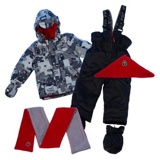 Костюм для мальчика со "звериным" принтом. Классический крой от Deux par Deux с утяжками по пояску и внутренней регулировкой по талии.Комплектация: куртка, полукомбинезон, шарф (флис), манишка (флис), варежки, пинетки.Количество наполнителя Aerofiber от фирмы Dupont:- тело - 85г;- рукава и штанины - 280г;- капюшон - 90г.Итого наполнителя: 455г.Представлен в цвете: серый с мордочками волков и медведей. None Можно купить без предварительного заказа.