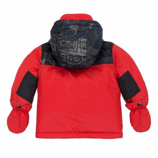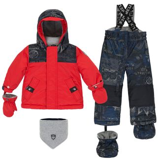 Нетривиальный костюм от Deux par Deux. Яркая красная куртка и темные принтованные штаны – и практично и очень стильно. Молния на куртке закрыта планкой, удобные боковые карманы, внутри флис приятного серого цвета, на капюшоне небольшой козырек. Принтованный полукомбинезон с завышенной талией. Рисунок на ткани отражает музыкальные компоненты, поэтому малыш в этом костюме будет напоминать маленького ди-джея. Пинетки и варежки отстегиваются. Комплектация: куртка, полукомбинезон, шарф (флис), манишка (флис), варежки, пинетки.Количество наполнителя Aerofiber от фирмы Dupont:- тело - 85г;- рукава и штанины - 280г;- капюшон - 90г.Итого наполнителя в комплекте: 455г. None Можно купить без предварительного заказа.