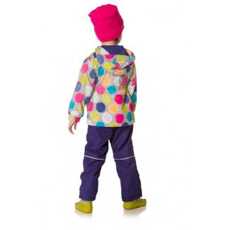 Яркий универсальный костюм, состоящий из куртки светло-серого цвета с дизайнерским принтом в крупный горох разных цветов, однотонных ярко-синих брюк, жакета и шапочки цвета фуксии. Технологичная ткань с водоотталкивающим покрытием сохранят тепло в прохладную, сырую погоду. Трикотажная подкладка куртки и брюк подходит для любой погоды и очень комфорта в использовании. Съемный яркий жакет из качественного микрофлиса можно использовать как пристегнутым к куртке для дополнительного утепления, так и отдельно. Удобные брюки усилены в местах повышенного износа, колени и по низу брючин, износостойкой тканью Cordura, а дополнительная резинка по низу брюк сохраняет тепло и защищает от попадания влаги. Стильный образ отлично дополняет яркая шапочка из микрофлиса (в комплекте). Для удобства использования шапочка для девочек от 6 мес до 4х лет выполнена с завязками, с 5 до 10 лет – без завязок. КурткаВерх: 100% полиэстер, 600mm водоотталкивающая пропитка верха тканиПодкладка: трикотаж - 65% полиэстер, 35% хлопокСъемный жакет и шапка: микрофлис 200 gsmБрюкиВерх: 100% полиэстер, 600mm водоотталкивающая пропитка верха ткани Подкладка: Трикотаж - 65% полиэстер, 35% хлопокCordura: на коленях, по низу штанин в брюках None Можно купить без предварительного заказа.