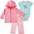 Комплект их трёх предметов включает: жакет с капюшоном, боди с коротким рукавом и штанишки. Комплект выдержан в одном стиле, гармонично подобрана цветовая гамма и декоративные элементы. Боди декорировано симпатичной аппликацией. Жакет застёгивается на молнию. Это универсальная одежда для новорождённой, идеальна как для дома, так и для прогулок. None Можно купить без предварительного заказа.