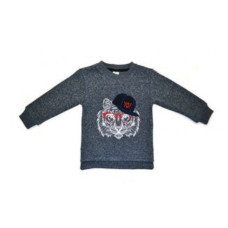 Симпатичный спортивный костюм для мальчика от 18 месяцев до 4 лет. Сложного серого цвета, с нашивкой и принтом на кофте. Штанишки с резинками и боковыми кармашками будут удобны даже для очень активного ребенка. Материал костюма – петельчатый футер, это супермягкий вариант 100% хлопкового полотна, гладкий снаружи и комфотрный с изнанки. None