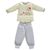 Нарядный костюм для мальчика из кофточки цвета крем-брюле с веселым принтом и мягких серых штанишек на резинках. Пастельные оттенки разбавлены смелыми красными пятнами (швы, рисунки, кнопки). Сшит из чистого хлопка для детей от трех месяцев до двух лет. None