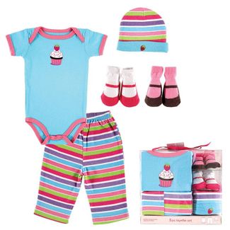 Замечательный подарочный набор для девочки. В набор входят:- боди - короткий рукав, кнопочки внизу- штанишки - отлично сидят благодаря мягкой резиночке на поясе- шапочка - прекрасно держится за счет резиночки у основании- две пары носочков с забавным дизайном в виде балетокИзделия декорированы яркими принтами и рисунками. Отличное качество, стильный дизайн и красивая подарочная упаковка делают набор идеальным подарком для малышки! None Можно купить без предварительного заказа.