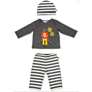 Универсальный супермягкий костюмчик для маленьких модниц! Стопроцентный хлопок. Удобные полосатые штанишки, кофта с забавным принтом на ткани и шапочка, которую дополняет симпатичный цветочек. Идеально подойдет для любого сезона! None