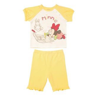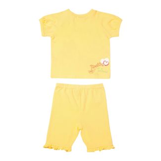 Футболка из эластичного материала,застегивается на три кнопки.Перед и спина футболки украшены принтом.Шорты из хлопкового материала,с резинкой на талии,внизу украшены рюшами. None Можно купить без предварительного заказа.
