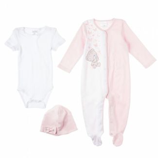 Подарочный комплект для новорожденной малышки. Хлопковый комбинезон на застежках-кнопках, украшен медведем Me to you. Хлопковая шапочка с бантиком. None Можно купить без предварительного заказа.