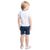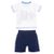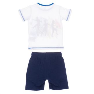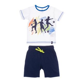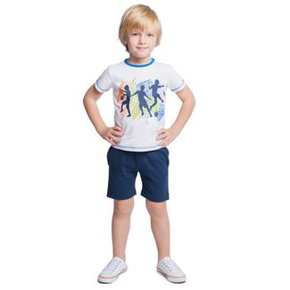 Комплект из хлопковой футболки и шорт. Шорты с двумя функциональными карманами. На поясе широкая резинка. Белая футболка с контрастными принтом. None Можно купить без предварительного заказа.