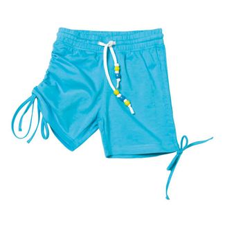 Комплект из эластичного трикотажа. Майка украшена рюшами и стразами.Шорты с поясом на резинке.По бокам регулируются шнурком. None Можно купить без предварительного заказа.