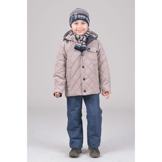 Стильный утепленный комплект для мальчика - красивая стеганая куртка и практичные темные брюки из прочной водо- и грязеотталкивающей ткани. Куртка выполнена в двух модных цветах - ярко-синий и темно-бежевый. Капюшон, фурнитура и внутренняя отделка на куртке выполнены в тон ткани брюк. Куртка застегивается на кнопки. Уютный капюшон можно регулировать с помощью резинки-шнура. Куртка декорирована двумя вместительными боковыми карманами на молнии и модным накладным кармашком на груди с двумя кнопками, как нравится всем мальчишкам. Брюки удобные, не сковывают движения ребенка, дополнены плечевыми регулировочными резинками с пластиковыми застежками. В таком практичном комплекте ребенку будет комфортно весной и осенью. None Можно купить без предварительного заказа.