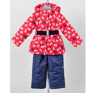 Роскошный демисезонный комплект для маленькой модницы - куртка с поясом и полукомбинезон. Куртка выполнена из яркой водоотталкивающей ткани с фирменным принтом Shaluny с милыми бантиками по всей поверхности изделия, брюки - однотонные из прочной ткани на молнии с плечевыми регулировочными резинками и пластиковыми застежками. Пояс на куртке съемный из широкой резинки с красивой металлической пряжкой. Стойка капюшона спереди застегивается на две кнопки для дополнительной защиты малыша от ветра. Основная молния прикрыта планкой. Уютный капюшон можно отрегулировать по форме головы с помощью шнура-резинки. Комплект с тонким слоем уникального утеплителя ИЗОСОФТ и мягкой хлопковой подкладкой смотрится очень нарядно и стильно, а ребенку в нем легко и комфортно. None Можно купить без предварительного заказа.