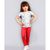 Практичный комплект для девочки. Красные леггинсы, футболка с узором из красных птичек на мятном фоне. None