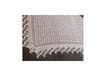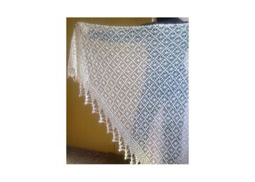 Косынка из натурального пуха, очень богатая, теплая. Связана крючком. Цвет белый с серой вставкой по кайме. Прослужит не один год и станет любимым аксессуаром. Размер 200х160х160 см.