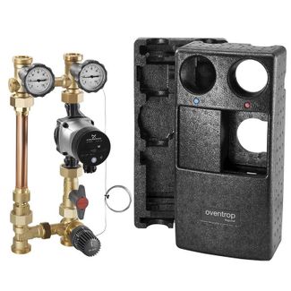 Насосная станция Oventrop Regumat F-180 Ду 25 с насосом Grundfos ALPHA2 25-60 и шаровым краном, теплоизоляцией и трёхходовым смесителем. Материал - латунь. Макс. давление 10 бар, макс. температура +85 С. None Страна производства: Германия