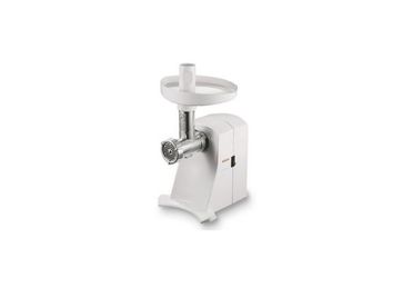 Номинальная мощность двигателя: 450 Вт Максимальная мощность при блокировке вала 1000 вт Производительность 1,5 кг/мин Формовочный диск с отверстиями диаметром 4,5 мм Дополнительная предохранительная втулка в комплекте Высота под посуду для мяса 140 мм Компактно складывается при хранении Отсек для кабеля и для хранения формовочных дисков Компактно складывается при хранении None
