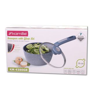 Ковш Kamille 18см с крышкой и гранитным покрытием