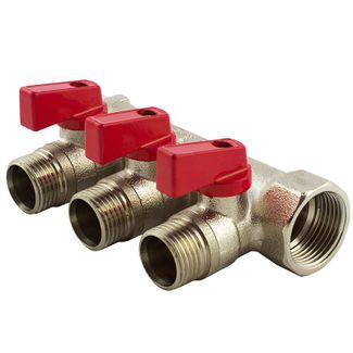 - Коллектор с шаровыми кранами Stout 3 4" 1 2"х4 (красные ручки) по выгодной цене 975 р. руб.;