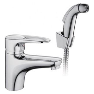 Латунный смеситель Frap F1268 для раковины с гигиеническим душем. Оснащён рычажной ручкой с керамическим картриджем Sedal диаметром 40 мм. None Страна производства: Китай