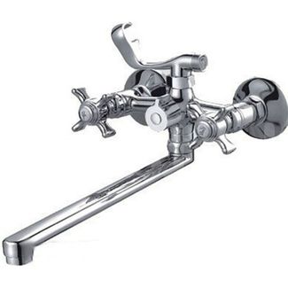Латунный смеситель Frap F2124 для ванны с картриджным переключателем в корпусе. Оснащён двумя вентилями с керамическими кран-буксами в латунной оболочке и изливом длиной 30 см. None Страна производства: Китай