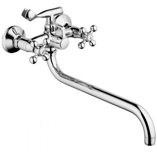 Латунный смеситель Frap F2619 для ванны с переключателем в корпусе. Оснащён двумя вентилями с керамическими кран-буксами в латунной оболочке и изливом длиной 36 см. None Страна производства: Китай