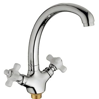Латунный смеситель Frap F4218 для кухни. Оснащён двумя керамическими ручками с керамическими кран-буксами в латунной оболочке. None Страна производства: Китай
