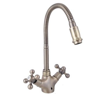 Латунный смеситель Frap F4319-4 для кухни. Оснащён двумя вентилями с керамическими кран-буксами в латунной оболочке. Гибкий излив. None Страна производства: Китай