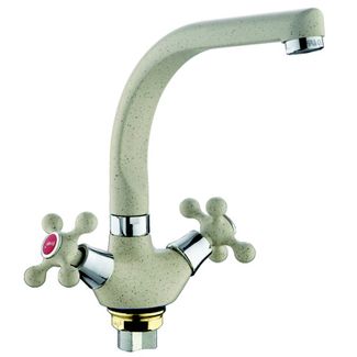 Силуминовый смеситель Frap F5408-10 для кухни светло-бежевый. Оснащён двумя ручками с керамическими кран-буксами в латунной оболочке. None Страна производства: Китай