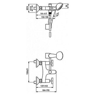 Смеситель Vidima Сева дуо BA114AA для ванны с душем