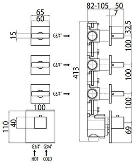 Термостат для ванны Bossini Outlets (Z033205.030) на три потребителя