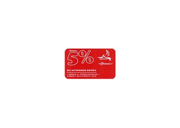 - Карта со скидкой 5% на лечебные корма по выгодной цене 250 р. руб.;