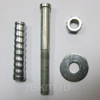 Болт самоанкерующийся распорный БСР 12х110 ГОСТ 28778-90 купить в СПб, доставка по всей России по низким ценам. Болт самоанкерующийся распорный (БСР) ГОСТ 28778-90 разработан с целью повысить надежность и технологичность закрепления деталей строительных конструкций, трубопроводов, оборудования к бетонным, железобетонным и кирпичным конструкциям зданий и сооружений. Широкий диапазон климатических исполнений по ГОСТ 15150 позволяет использовать болты в разных регионах России. Особенностью данного изделия является заклинивающий элемент (ЗЭ) изготовленный из ленты в виде спирали. При осаживании ЗЭ, в предварительно просверленном отверстии, спираль ЗЭ увеличивается в диаметре, тем самым обеспечивая плотный контакт с поверхностью отверстия. Болт БСР устанавливают в образованное отверстие головкой болта вперед. Перед установкой болта БСР следует убедиться, что ЗЭ широкой частью витков обращен в сторону головки болта. На стержень болта устанавливают инвентарную втулку. Постукиванием молотка по свободному торцу втулки осаживают ЗЭ до прекращения осадки. Затем втулку снимают со стержня болта. На выступающий резьбовой конец болта БСР с помощью шайбы и гайки закрепляют детали строительных конструкций, трубопроводов, различного оборудования и др. Для обеспечения несущей способности БСР к гайке прикладывают крутящий момент затяжки, превышающий 20% расчетного.