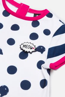 Платье Acoola - красивая модель с коротким рукавом для юной модницы, сделанная из приятной на ощупь ткани. Оригинальный фасон "трапеция" смотрится очень стильно. Сзади платье застегивается на молнию, впереди два потайных кармана, на полочке декоративная резиновая нашивка. По всему платью принт в виде крупного гороха и мордочек кошек. Контрастные ярко-малиновые детали по низу изделия, на рукавах и на горловине делают модель нарядной. Минимальная сумма заказа 1500 руб. Возможен самовывоз. Есть доставка.