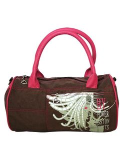 Сумка молодежная повседневная в стиле Banana с принтом Action! - коричневая сумка на молнии с декоративной строчкой, принтом в виде головы девушки с развивающимися волосами. Минимальная сумма заказа 1500 руб. Возможен самовывоз. Есть доставка.