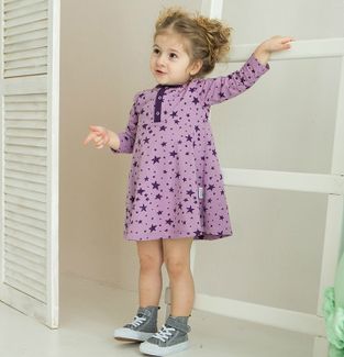 Платье Bambinizon Звездное небо сиреневое - легкое нежное платье с длинным рукавом актуальное для весенне-летнего сезона. Материал 100 хлопок с шелковистой текстурой и отличной воздухопроницаемостью. Фасон платья с кокеткой, юбка слегка расклешенная, застежка на планке спереди. Возраст ребенка: от 1 до 6 лет. Минимальная сумма заказа 1500 руб. Возможен самовывоз. Есть доставка.