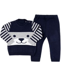 Комплект Crockid для мальчика Мишка серый связан из акриловой пряжи. Джемпер застёгивается на две пуговицы на плече, спереди вывязана мордочка медвежонка. Штаны на резинке. Наличные, Visa/MasterCard, Яндекс.Деньги, WebMoney Возможен самовывоз. Есть доставка.