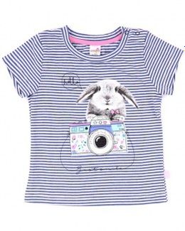 Футболка для девочки в бело-синюю полоску торговой марки "Crockid" декорирована оригинальным принтом в виде зайца с фотоаппаратом на лицевой стороне изделия. Футболка с коротким рукавом, с застежкой на две кнопки на плече. Минимальная сумма заказа 1500 руб. Возможен самовывоз. Есть доставка.