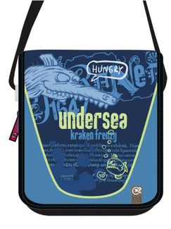 Сумка UnderSea малая украшена рисунками на морскую тематику. Декорирована контрастными надписями и изображениями обитателей моря и океана. Закрывается клапаном на липучку. Носится на плече. Минимальная сумма заказа 1500 руб. Возможен самовывоз. Есть доставка.