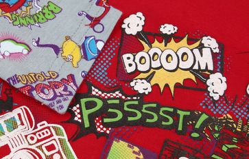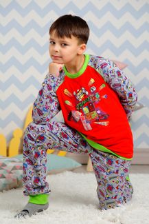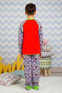 Пижама c принтом Comics серый/красный KitFox - пижама для мальчика из качественного трикотажа с ярким принтом, оформлена манжетами контрастного цвета Минимальная сумма заказа 1500 руб. Возможен самовывоз. Есть доставка.