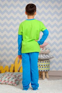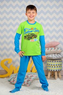 Пижама Race салатовый/голубой KitFox - пижама для мальчика с принтом на автомобильную тему, эффект второго рукава, оформлена манжетами контрастного цвета Минимальная сумма заказа 1500 руб. Возможен самовывоз. Есть доставка.