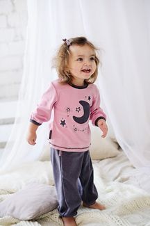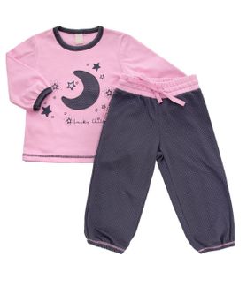Пижама для девочки розовая Lucky Child - уютная модель из мягкого трикотажа. Низ рукавов и штанин присобран. Пояс штанишек на кулиске. Декор - принт на лонгсливе. Для детей от 12 месяцев до 8 лет. Минимальная сумма заказа 1500 руб. Возможен самовывоз. Есть доставка.