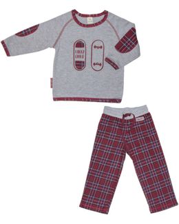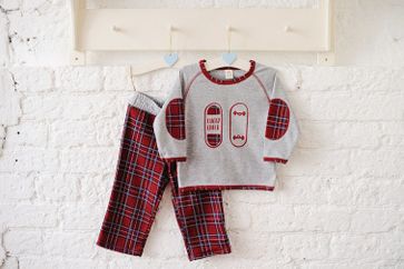 Пижама для мальчика красно-серая Lucky Child - оригинальная трикотажная пижама, состоящая из штанишек на кулиске и футболки с длинным рукавом. Декор - принт. Для детей от 12 месяцев до 8 лет. Минимальная сумма заказа 1500 руб. Возможен самовывоз. Есть доставка.