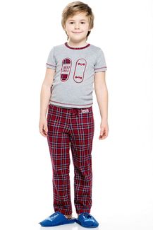 Пижама для мальчика с коротким рукавом красно-серая Lucky Child - удобный комплект для сна из мягкого трикотажа. Декор - принт. Для детей от 12 месяцев до 8 лет. Минимальная сумма заказа 1500 руб. Возможен самовывоз. Есть доставка.