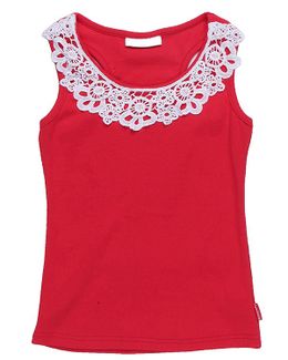 Трикотажная майка Luminoso декорирована кружевом на горловине. Благодаря спинке-борцовке модель отлично подходит для жаркого времени года. В боковом шве фирменная лейба. Минимальная сумма заказа 1500 руб. Возможен самовывоз. Есть доставка.