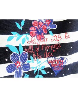 Вместительная сумка Luminoso изготовлена из полосатой хлопковой ткани и декорирована цветным принтом со стразами. Ручки выполнены из плетёного текстильного шнура. Минимальная сумма заказа 1500 руб. Возможен самовывоз. Есть доставка.