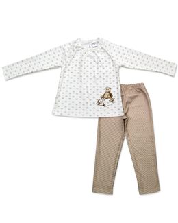 Пижама для девочки Игрушки экрю Мамуляндия - удобный комплект, состоящий из футболки с длинным рукавом и присобранной горловиной и штанишек с эластичным пояском. Изготовлен из трикотажного полотна с фирменным набивным рисунком "Мамуляндия". Для детей от 18 месяцев до 7 лет. Минимальная сумма заказа 1500 руб. Возможен самовывоз. Есть доставка.