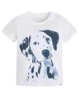 Футболка для мальчика Mayoral выполнена из белого трикотажа и декорирована фотопринтом далматинца спереди. Круглый вырез горловины обработан обтачкой. Минимальная сумма заказа 1500 руб. Возможен самовывоз. Есть доставка.