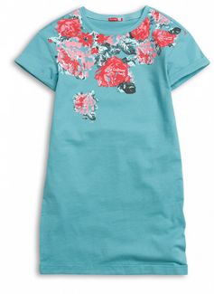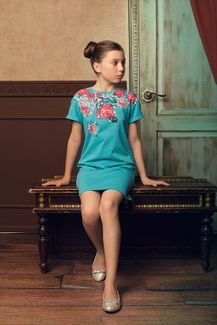 Платье Pelican 116-146 р-р лазурное выполнено в спортивном стиле. Модель с коротким рукавом и округлой горловиной. Платье декорировано модным цветочным принтом. Минимальная сумма заказа 1500 руб. Возможен самовывоз. Есть доставка.